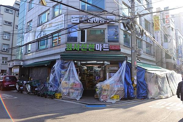 一開始用導航看明明就在附近、卻像鬼打牆似的找不到門口,原來地鐵站一出來就是了,我們還走到大馬路那邊找大門。只能說,韓文招牌對我們來說,很難知道它是賣什麼的!