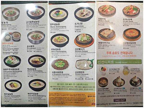 菜單有韓中英日四種語言,最招牌的當然就是雪濃湯,也就是牛骨湯。