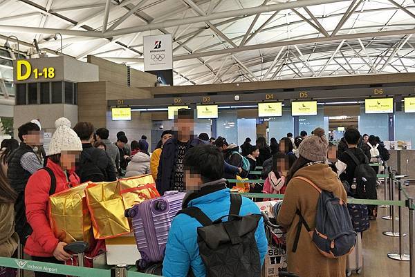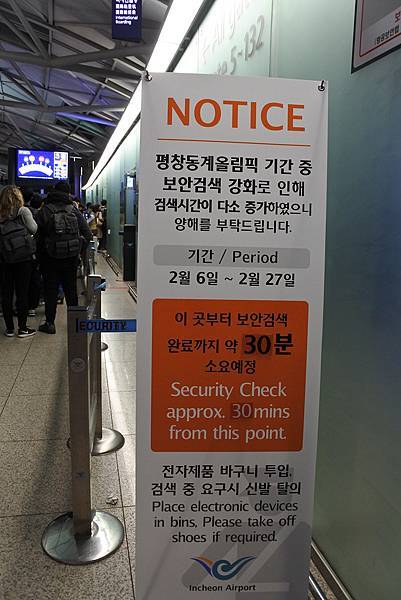 由於平昌冬奧的關係,自2月6日起安檢較為繁瑣,竟然還要脫鞋檢查!!而且過了晚上8點,檢查櫃台又關了一些,排隊又花了20分鐘 !