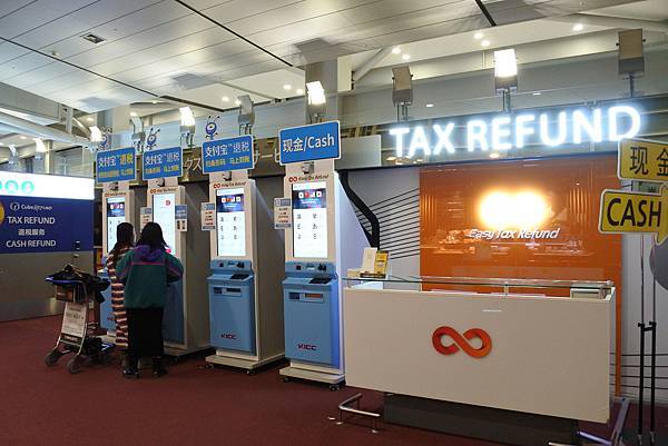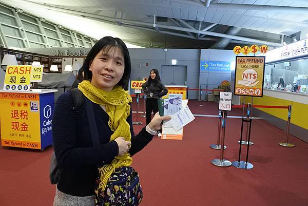 好不容易出了關,來退還稅金櫃台領現金囉!往27號登機門的指標走就會看到了!非常簡單!