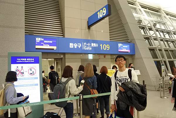 我們的登機門在Gate109,還得搭航站列車過去。雖然JCB卡可以免費使用仁川機場貴賓室SKY HUB Lounge和Matina Lounge,據說都有提供飲料和餐點自助吧,但位在Gate43附近。