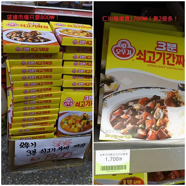 跟同事借的2張T-money卡還有餘額800₩,想說把它買光,但要找到售價800₩的東西還真難,尤其是早上才剛去過望遠市場,發現機場價格幾乎都是望遠市場的2倍,像這種韓國炸醬,望遠市場只要800₩ ,機場卻要1700₩,2張卡就算用完也不夠付,實在買不下去呀!還不如送給同事吧!