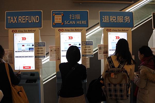 在進入安檢前要先到旁邊的退稅機刷條碼再進海關,酷航的報到櫃台D這邊就有一區,再過海關後在領退稅現金的櫃檯旁也有退稅機,如果時間很趕還是可以先進關再去辦。