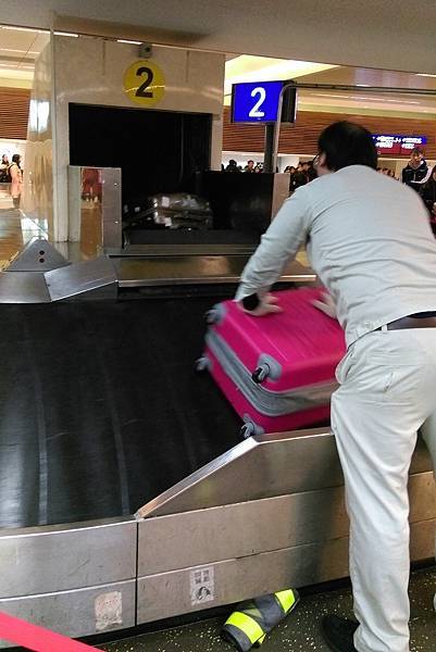 行李又等得有夠久,大概超過半小時吧!等待的同時,女兒發現台灣的行李轉盤比仁川機場更貼心,還有工作人員呵護行李減少碰撞,揪感心喔!