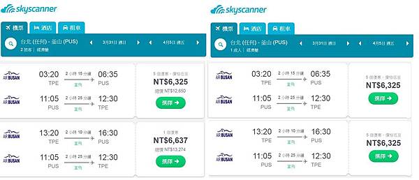 而直接去五福的網站查詢,也查不到這段時間的機票價格,就一定非得從Skyscanner連進去才訂得到4月份的釜山航空機票,真的很神奇。