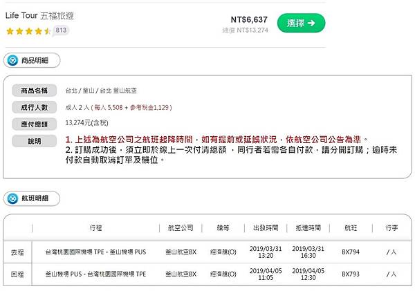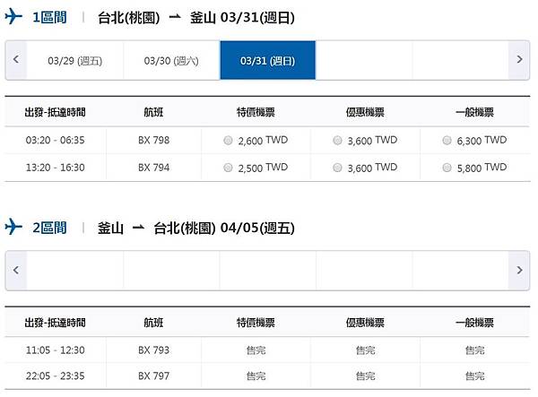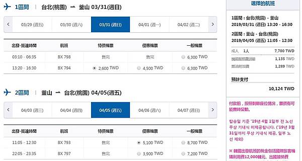 又查了一下釜山航空官網的價格,發現4月份的票官網都還沒開賣,但旅行社竟然有賣!
