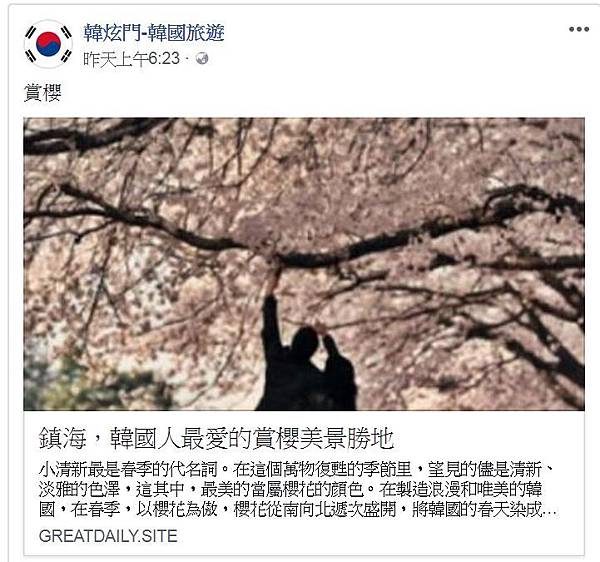 最後促使自己查了機票,又在當天就訂機票的,就是在上午7點左右看到FB的這篇鎮海,韓國人最愛的賞櫻美景勝地。