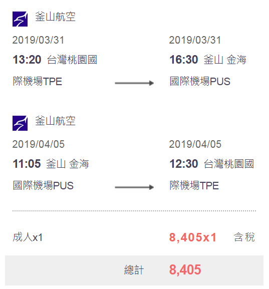 2019年1月9日釜航開放夏季航班訂票,果然如我預期的,雖然3月31日去程價格沒變,但4月5日回程飆2倍,同樣3/31-4/5得多花將近4千元!所以買櫻花季機票真的需要一點衝動!