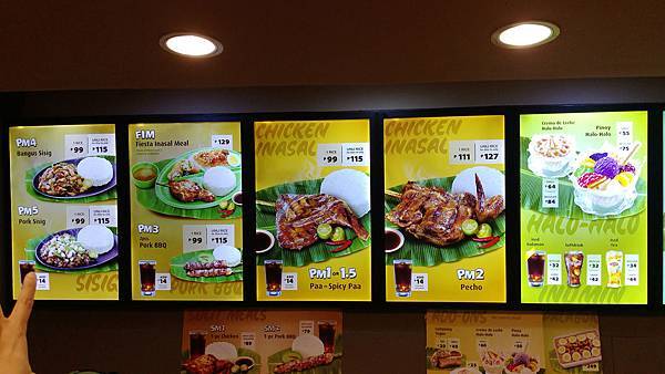 Mang Inasal有個很大的賣點的就是Unlimited Rice!,雖然我的行程表有註明這家「白飯免費」,但現場點餐時早已忘得一乾二淨,而且菜單上是縮寫"UNLI RICE",根本也沒意識到可以點白飯吃到飽。不過Unlimited Rice不是「免費」的意思,而是「無限量的飯」,每個PM餐就有附1碗白飯,但加個16p(10元)就可以無限續白飯。