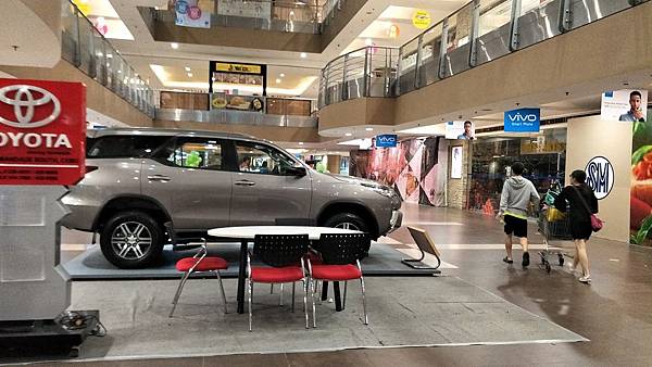 新穎寬敞的SM Mall跟前面逛的E Mall和Gaisano Grand Mall比起來,這就是五星級購物中心,連汽車展場都進來了!