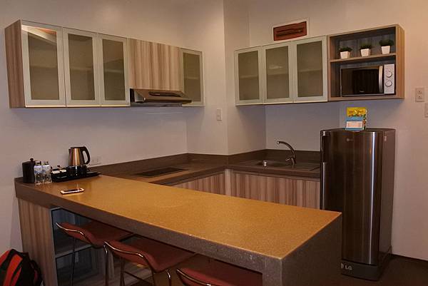 雖然有廚房,但實際上也用不到,看爽的!因為櫥櫃裡面根本沒鍋具是要怎麼煮呀!