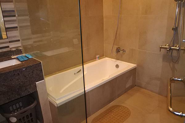 浴室是乾濕分離,還有大浴缸,可惜我們也沒時間泡了,拿來洗泳衣很方便XDD