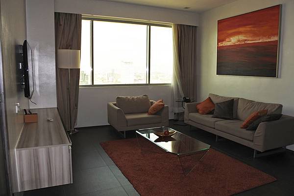 後來才換到第一排這種最高級、有客廳和廚房的 Double suite房型,等於是兩間雙人房的空間。