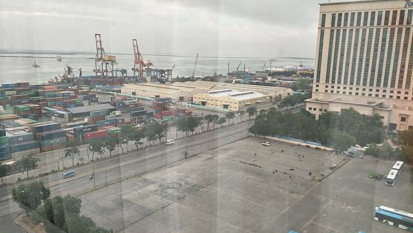 還有一點海景喔!同事前一個月跟團也是住了這間飯店雙人房,但他們的房間在另一側,剛好被隔壁施工中大樓擋住了景觀,運氣就沒我們好了!