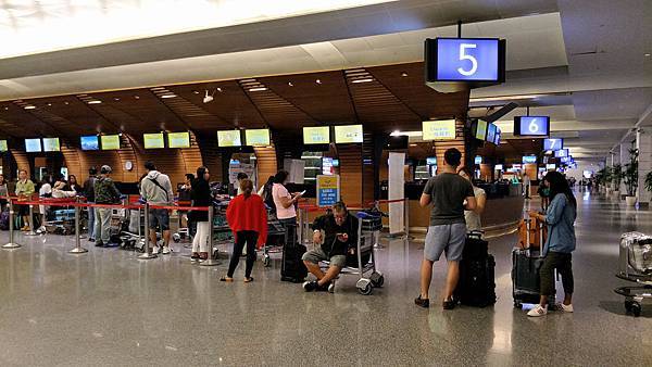 這時間出境的人潮雖然少,但海關人手也少,所以還是要排一下隊,雖然我們全家都辦了自動通關,但為了想多蓋個出境章,不想出關後再去公務櫃台補蓋章,還是寧可排一下等人工出關。