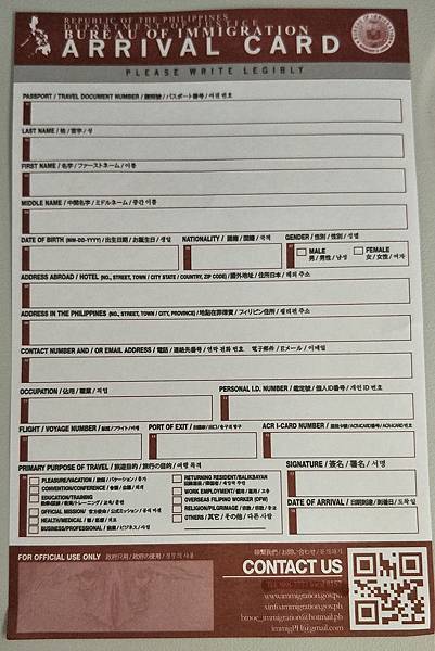 雖然已經沒有多少時間可以補眠了,但還是要先填入境單,據說這是新版的入境卡,還有繁體中文字,只是還是必須寫英文,所以還得先準備填表的基本資料英文版喔!