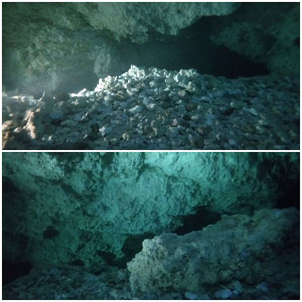 不過這裡的光線比Paraiso Cave暗很多,沿著壁面游過去也要特別注意,水中凹凹凸凸的石灰岩非常尖銳,一不小心就會割到皮膚。