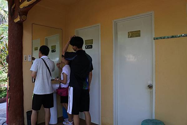 因為洞穴沒有什麼遊客,而且水這麼乾淨,我們在一旁凸出的石灰岩遮蔽下,老公幫我們圍著沙龍換衣服,不用再去外面花錢淋浴更衣了。