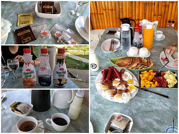 進口花草茶、鬆餅、水果,還有果汁、鮮奶和現磨咖啡,老闆特別強調是True Coffee!因為這幾天除了宿霧Bayfront Hotel的自助早餐有研磨咖啡之外,其他的飯店都只有沖泡咖啡,也真的是少見了!