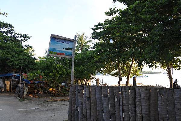 樹上掛了明顯的告示牌,搭乘螃蟹船到Tulang Diot一個人只要10p。