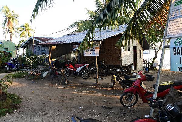 竟然還有機車修理店耶!外牆好像還只是用椰殼編的而已,在海邊耶~颱風來襲承受得了嗎?