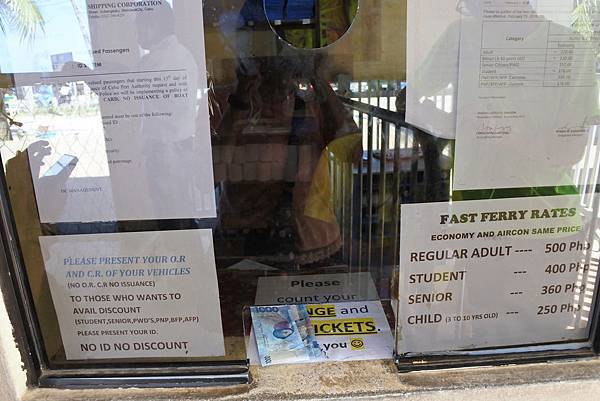 只有兒子有學生證,單程400p,成人票500p。雖然搭到Mactan快艇500p比搭去Danao的慢船180p貴了將近3倍,但我還是願意花!