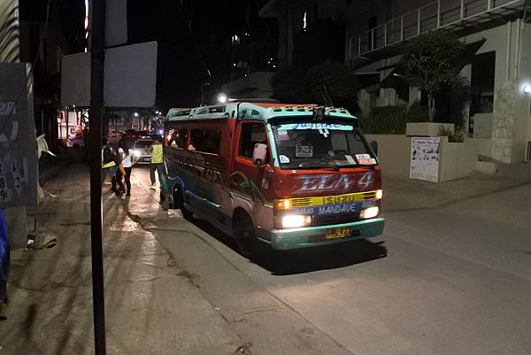本以為他們會叫旅遊服務合作夥伴的車,結果是服務人員幫我們到大馬路上把計程車叫來飯店門口,而且一樣是跳表耶!這時間竟然已經有Jeepney在營運了耶!宿霧市區的車輛還不少耶,彷彿是個不夜城!