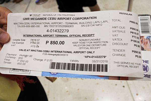 要出海關得先繳離境稅,原本只要750p,遷到新航廈後也漲到850p了!不管搭廉航還是傳統航空都是要現場付喔!買宿霧機票時都不含離境稅,但馬尼拉機票就有含離境稅,幹嘛不隨機票徵收真是麻煩呀!最好預留一些披索,沒有也沒關係,現在也可以刷卡付離境稅了。