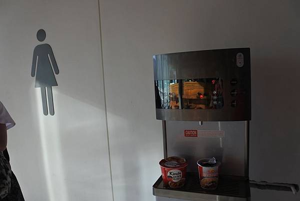 可是這時飲水機要用水的人太多了!出水量應接不暇,還要等好幾分鐘才會留一點水出來。所以不要說泡麵,我們連水都忘了要先裝,虧我們剛才還有去貴賓室,完全沒裝水!所以當然也就沒辦法泡麵了,最後是登機前還是排我們前面的人讓我們先裝一點水,真的是有夠迷糊!