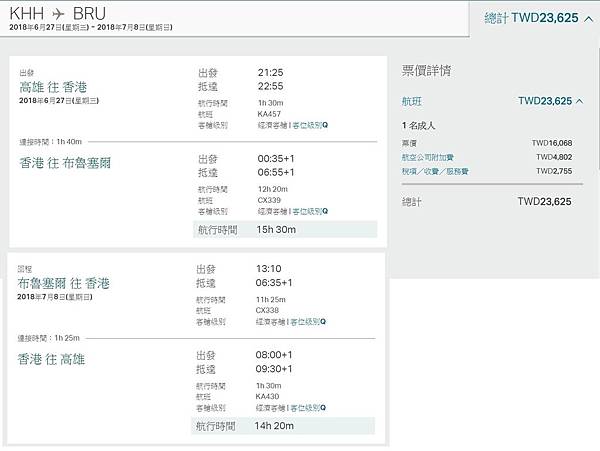 2019年2月27日,我又看到國泰再度促銷,同日期不到1萬8就可買到比利時布魯塞爾來回機票喔!