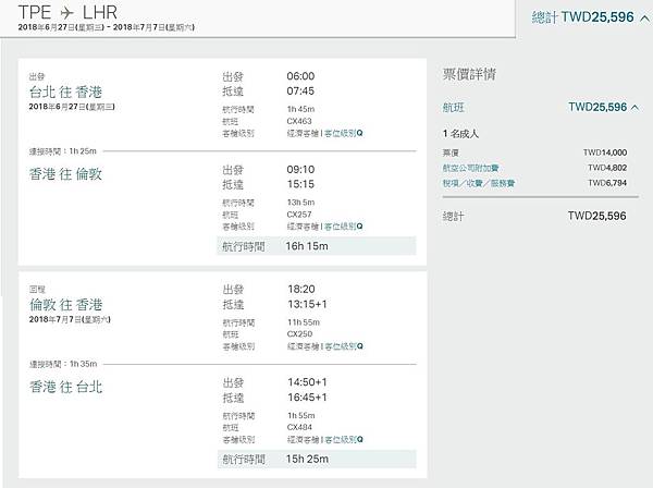不過2017年下半年,發現國泰長程線常有促銷,2018年6月底國泰經香港轉機飛歐洲的多條航線都已低於2萬5!不僅轉機時間短,而且去程是晚班機,回程是午班機,非常不錯的航班!