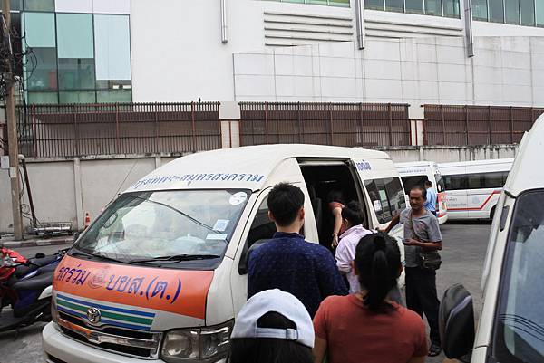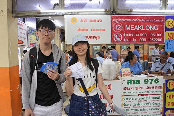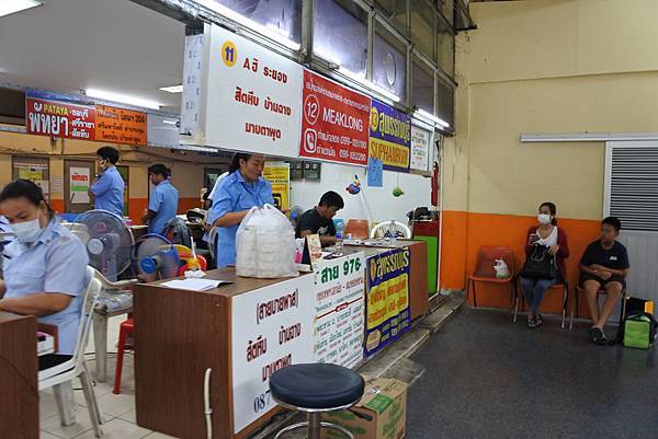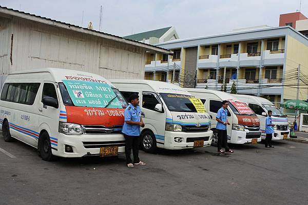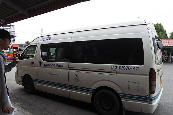 我們7點半走出旅館的巷口,到對面的馬路攔計程車。司機知道我們要去東巴士站,就問我們要去哪裡?我其實也知道他是想招攬我們搭他的計程車去美功,我就跟他說計程車太貴了,但他說不貴,開價來回好像是฿1300(有點忘了不太確定是否是這個數字),還說會等我們再載我們回來,我說還要去安帕瓦,他也說OK。我想想全家小巴來回車資就要฿640了,再加上旅館車站間來回計程車資也超過฿200,還有雙條車,如果包車來回฿1300似乎可以考慮。但高速公路過路費要另外付,我說OK。
