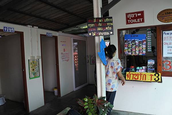 我們在這裡先上廁所,東南亞國家上廁所幾乎都要收費。這裡的廁所是我們這幾天最便宜、也是唯一只要฿3的廁所,其他都要฿5,甚至大城還上到฿10的廁所,是我們目前以來上過最貴的廁所!不過是有附茶水的廁所,後面再分享了。