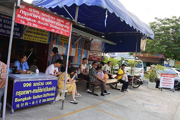 我們搭的這班應該是只有到南巴士站,沒有到Bang Wa BTS站,我們到哪下車都可以,反正4個人搭計程車都比BTS便宜。但到了南巴士站,似乎有聽到司機講,但我們根本不知道,然後到了一個購物商場的地方,全部的乘客都下車了,我們也只好下車了...。反正我們本來就打算搭計程車,在哪裡下車也無所謂啦!在這個商場下車反而還比較近哩!晚餐本來想安排火山蚵子煎Tip Hoy Tod Phu Khao Fai(ทิพหอยทอดภูเขาไฟ),就在Robinson超市旁邊,所以就直接拿手機給司機看Robinson百貨的位置。