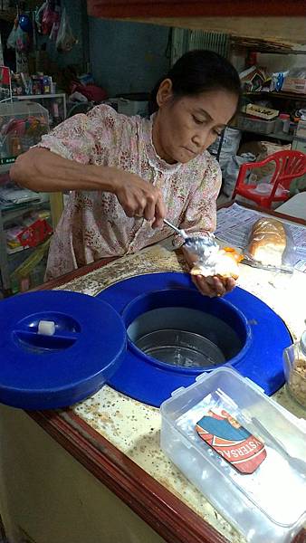 這樣1個麵包夾椰奶冰淇淋只要฿10,在遊船的某座廟可是要฿20喔!
