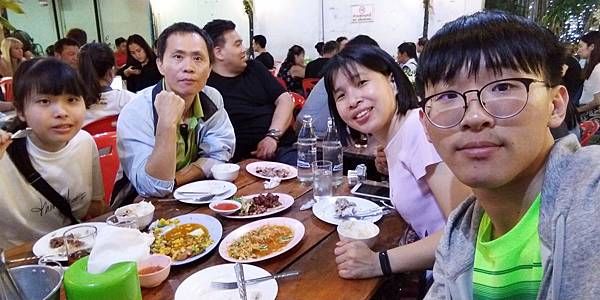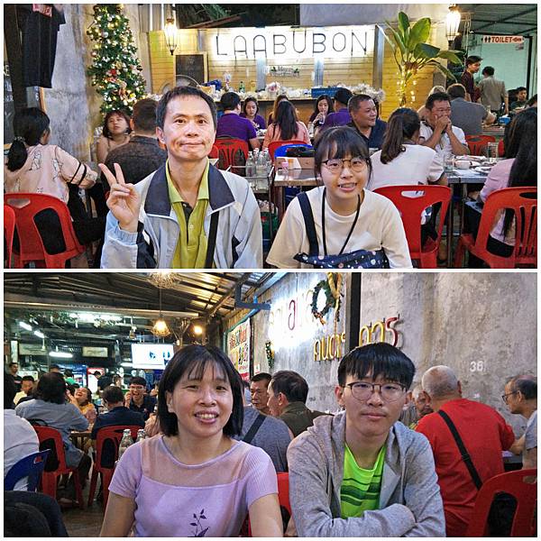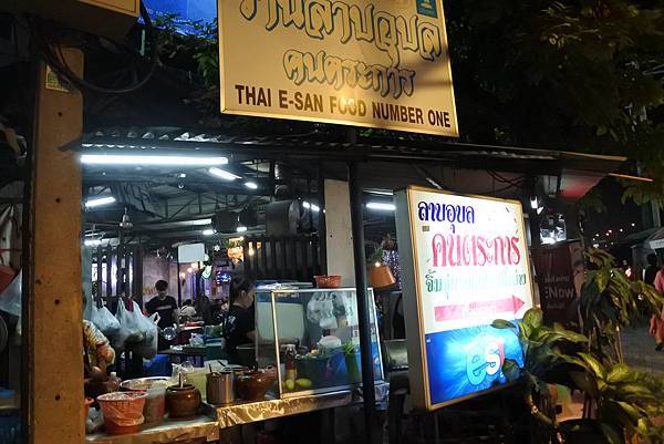 我們要再往前走,到這家Laab Ubon吃晚餐,也算是宵夜了吧。這一路等車、搭車、轉車,到了餐廳坐定都快8點了,其實台灣都已經9點了說。