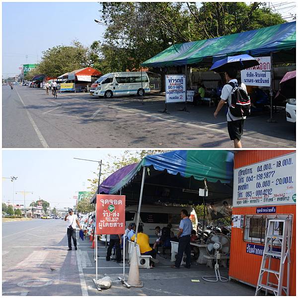 這裡有一整排的小巴站,要問是搭往曼谷哪裡的,像我們是要到Mo Chit站,就是在橘色的這間搭車。