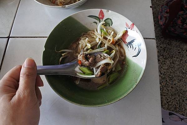 船麵有兩種,豬肉฿15,牛肉฿20,還有2-3片肉片,不過麵量真的很少,1碗真的1-2口就吃完了!