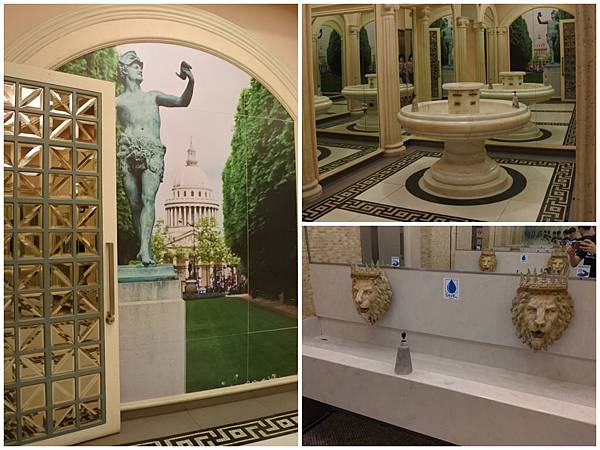 男廁洗手台則是以古羅馬帝國男性權力主導象徵的獅頭造型,自動感應給水,老公兒子都覺得好酷!