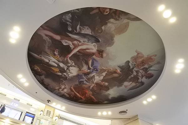 天花板上的彩繪,讓人彷彿置身於古羅馬城中。