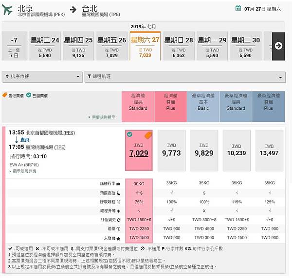 本來在長榮官網訂,女兒的Standard票價規則中預選座位來回都是P+$,意思就是可以選位,但要收費。當然也就不會去選位了,反正出發前48小時內網路報到也可以免費預選座位。