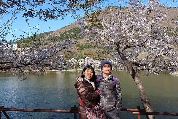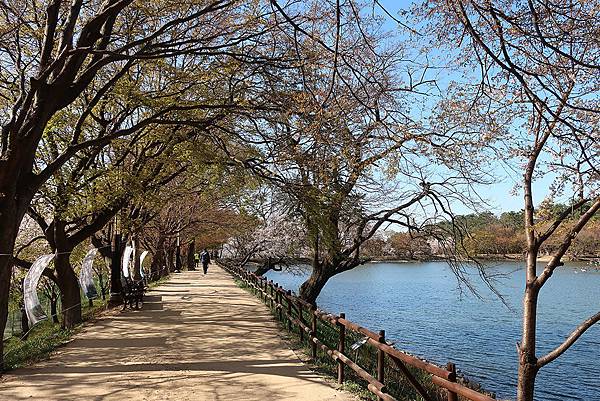 我覺得有櫻花搭配湖景,視覺效果就不同,但這裡跟慶州普門湖比起來真的遜色很多。