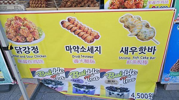 路上的小吃攤,竟然看到用簡體字的「毒火腿腸」,這翻譯翻得太恐怖了吧!