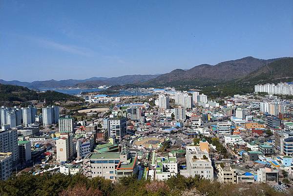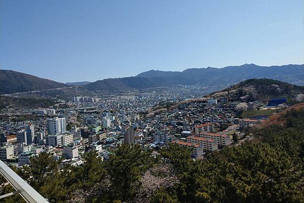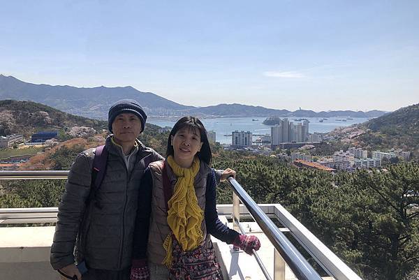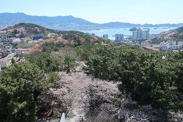 到了頂樓的觀景台,應該也是鎮海的最高點吧?可以遠眺這個被櫻花包覆的鎮海市區!