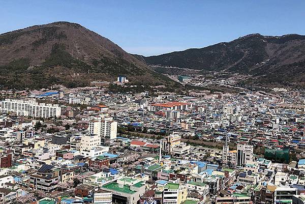 結束鎮海內水面環境生態公園賞櫻後,我們就直接搭計程車到第4個景點:帝皇山公園(제황산공원),雖然兩地相距不遠,但4人搭計程車省時又省力。到帝皇山公園也才3200₩,平均1人才台幣22元。