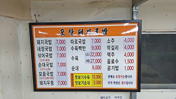 牛骨湯飯(따로국밥)和豬肉湯飯(돼지국밥)都是7000₩,在韓國餐點中這樣的價位算便宜了。