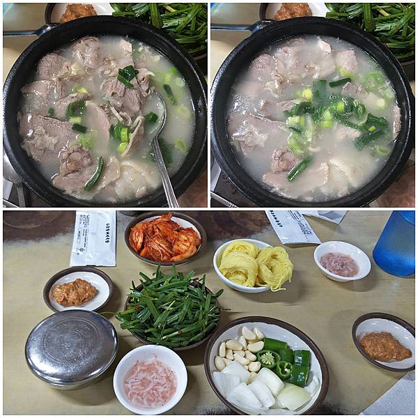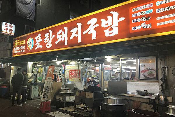 浦項豬肉湯飯(포항돼지국밥)原本是我到釜山第一天的晚餐口袋名單之一,但出發前幾天社團看到有人po松亭豬肉湯飯的碗都會在湯裡面洗過,看了有點可怕,所以當天就沒去吃。不過後來我們經過浦項豬肉湯飯這家看到他們並沒有這樣做,所以今天就過來吃了。