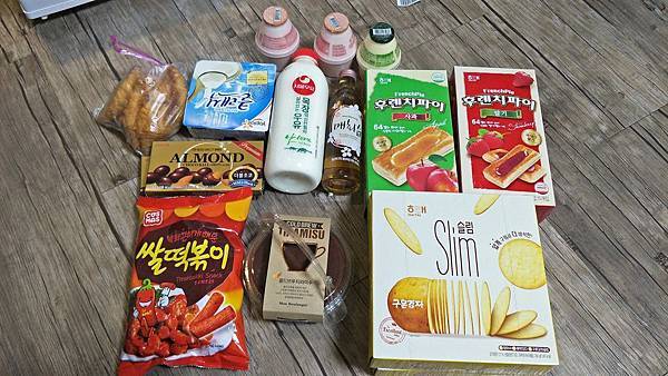 我們竟然只買這麼一點點....,其中1瓶草莓牛奶還放到最後一天到機場才灌掉它...。那個年糕條餅乾也才1000₩,女兒都說買太少,還真的有點後悔。
