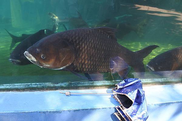 這應該是鯉魚的一種吧?超級巨大!雨傘是比例尺。