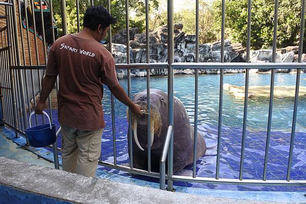 一走出大象表演場地就看到工作人員正在餵食海象,很逗趣!